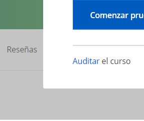 Es importante que sepas que para obtener el curso de manera gratuita debes seleccionar la opción de auditar curso: